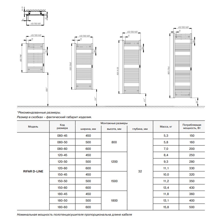 Технический каталог электрических полотенцесушителей RIFAR (D-LINE/D-BEND)